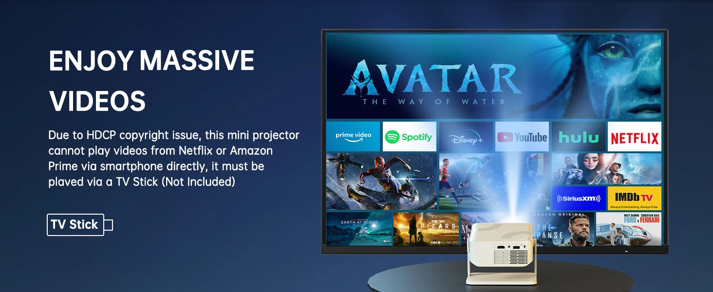 1× Mini Projector | 1× HDMI Cable | 1× Remote Control | 1× Power Adapter | 1× User Manual